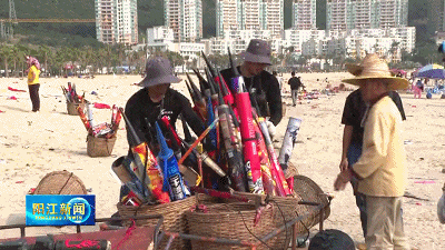 考虑到跨大年夜,数万名外埠旅客和当地市平易近正在海陵岛大角湾螺洲海滨公园沙岸燃放烟花、倒数跨年,